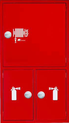 NORMEKS® model G12-R2T, iki adet portatif söndürücü için dikey bölmeleri olan üç kabinli