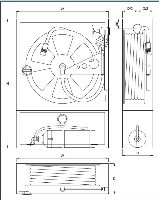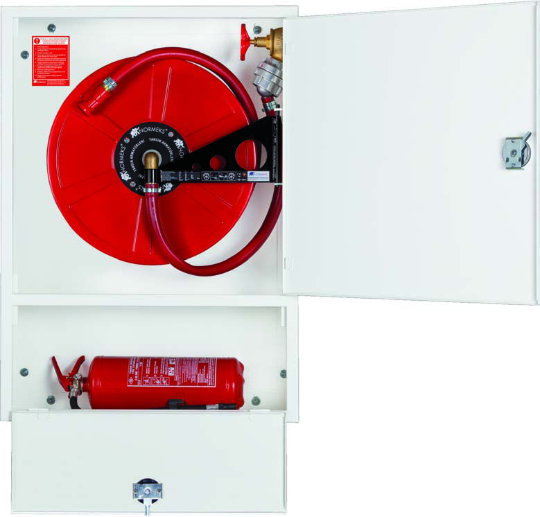 kabinli sıvaüstü montajlı bir dolaptır. Makara 180° asılı bir desteğe sabitlenmiştir