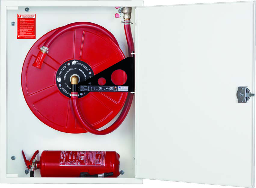 NORMEKS® model ST12-YT, sıvaüstü montajlı bir dolaptır. Makara 180° asılı bir