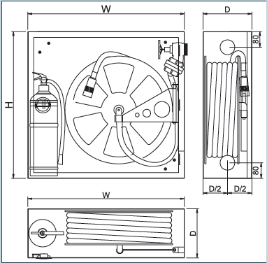 barındırmak amacıyla üretilmiş sıvaüstü montajlı bir dolaptır. Makara 180° asılı bir
